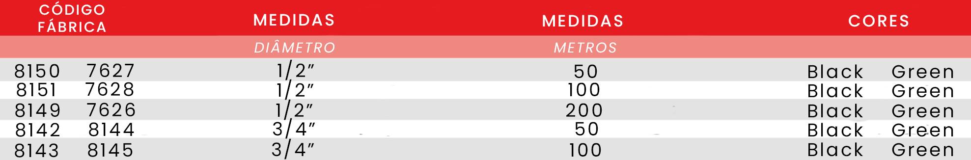 Aplicações: A mangueira Antitorção da Plastmar é indicada para transporte de ar, água ou outros fluidos inorgânicos a média pressão. São muito utilizadas em jardinagem. Seu sistema antitorção evita que a mangueira dobre.